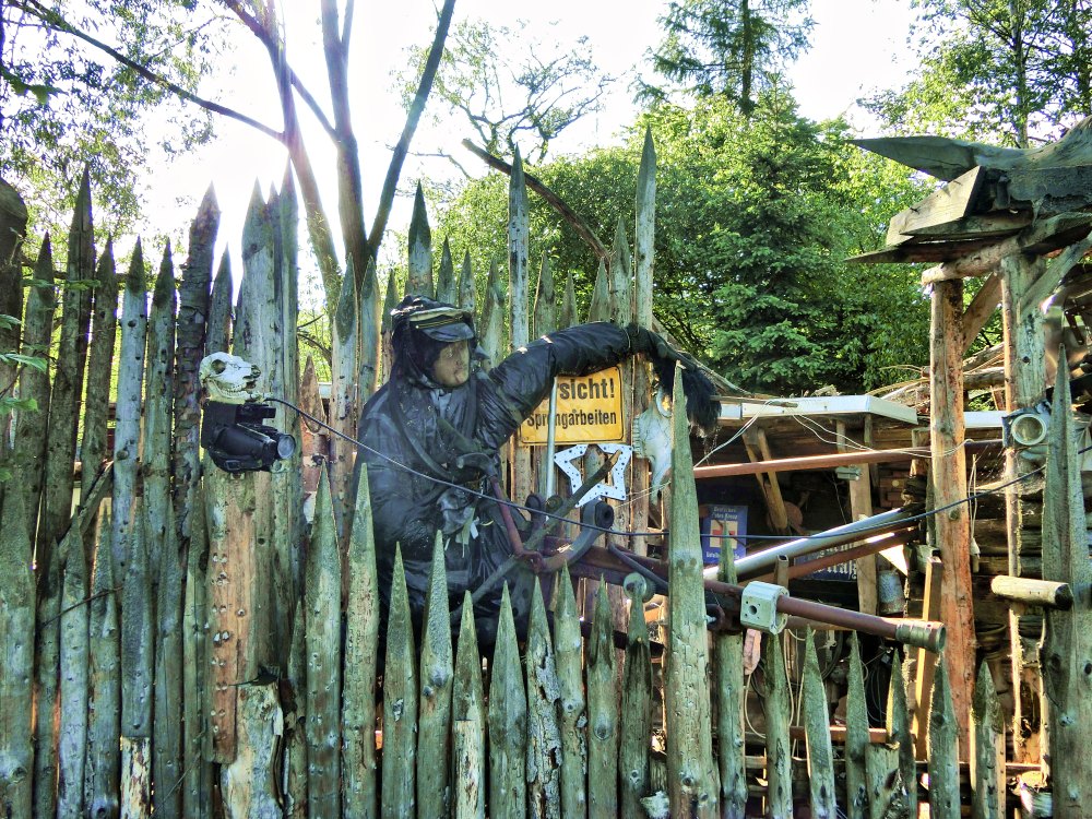 So an der Talstraße in Dörfel. Dort verbirgt sich hinter einem "Limes", eine Festung, gespickt mit archaichen Gargoylen, Sonnenbrille tragenden Rittern und anderen Gestalten.